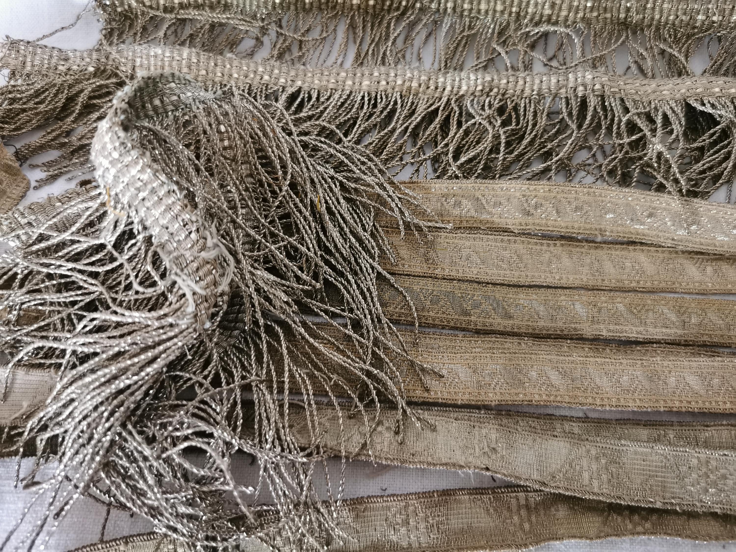 A gorgeous collection of 18th and 19th silver/ gilt trim and fringing. A really useful batch for the crafter, restorer, card maker, Santos doll restorer, pillow maker, lavender bag maker.