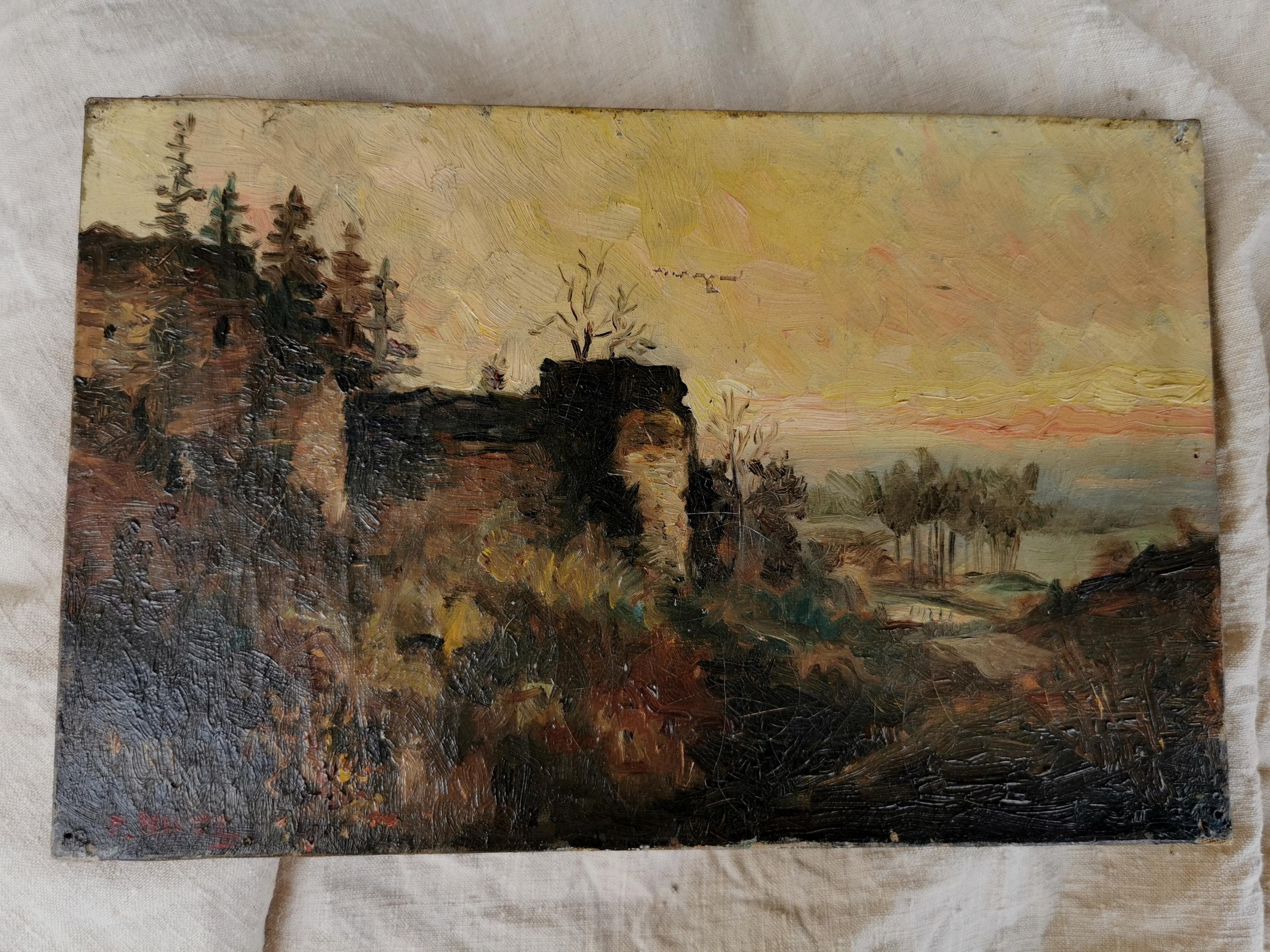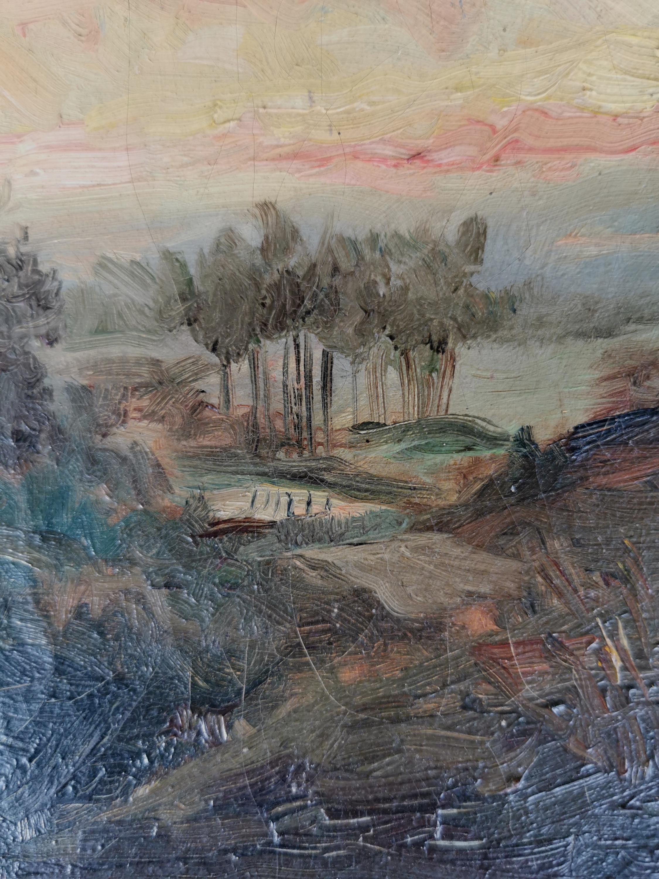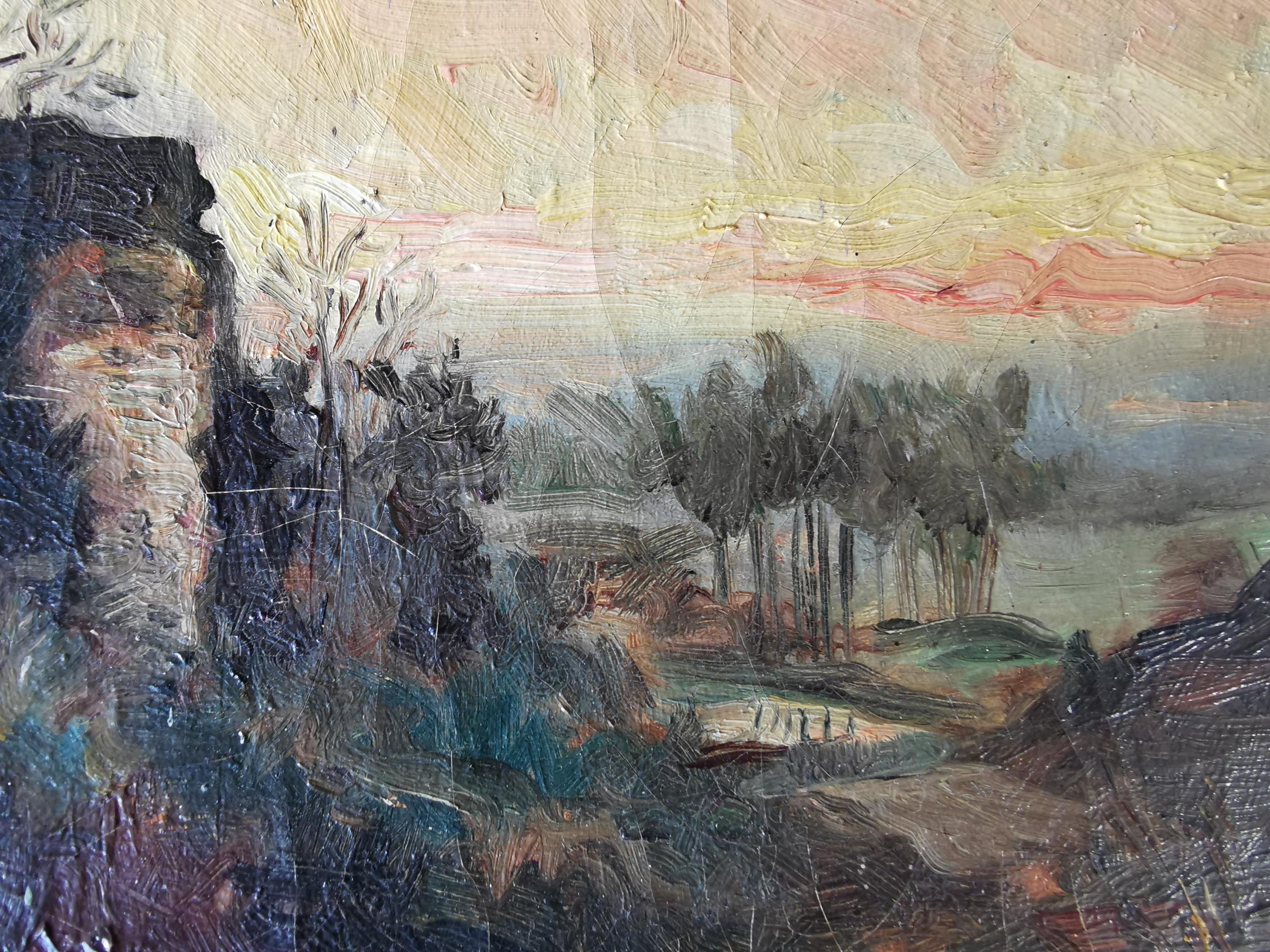 Antique French painting, landscape impressionist, 19 th century paintings.
