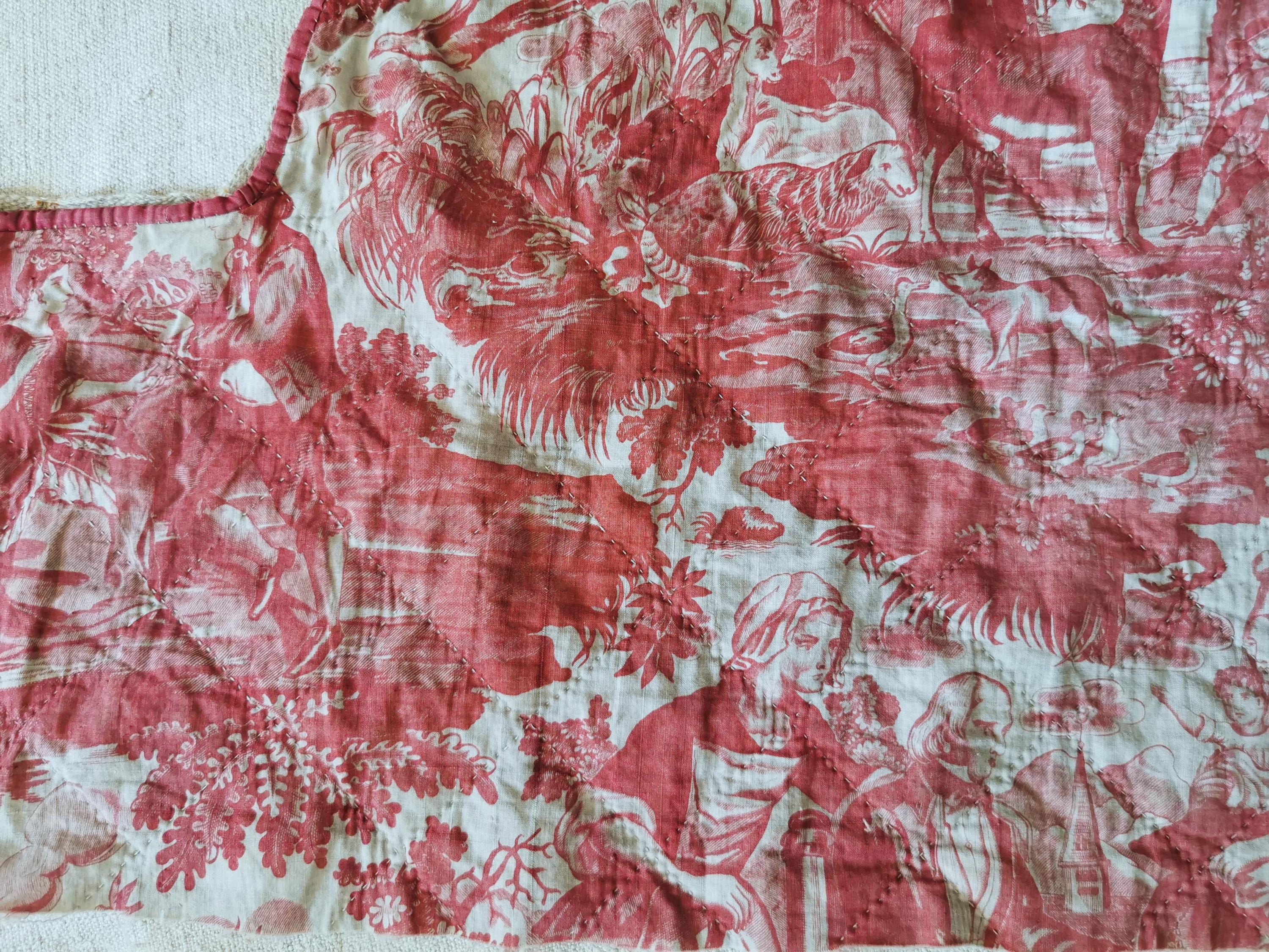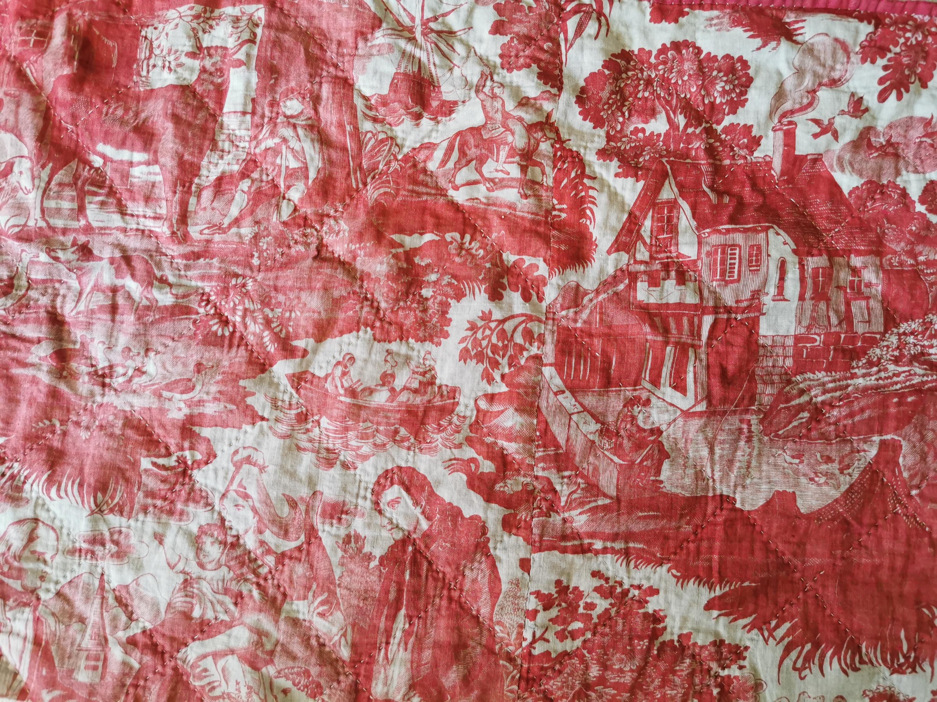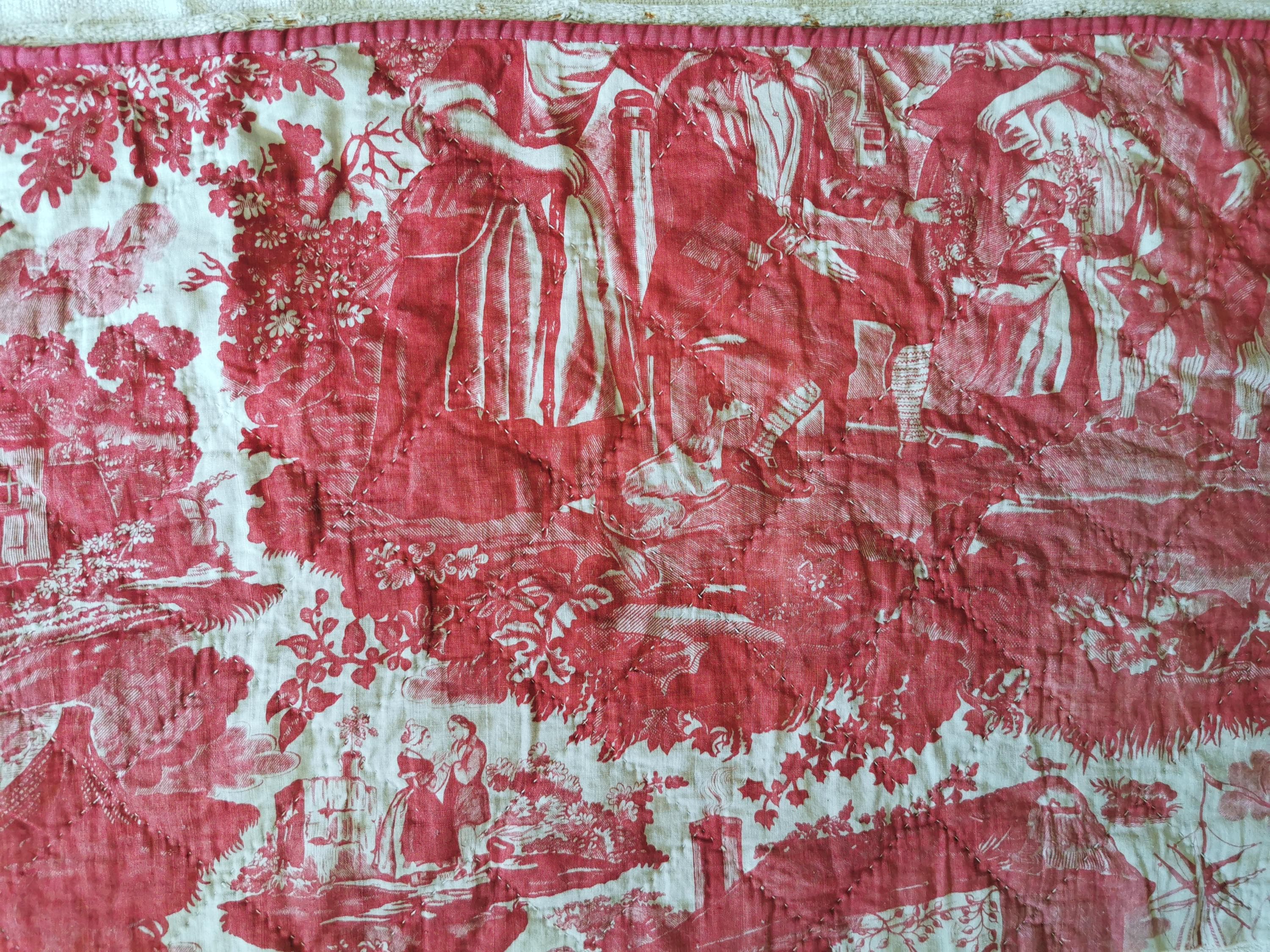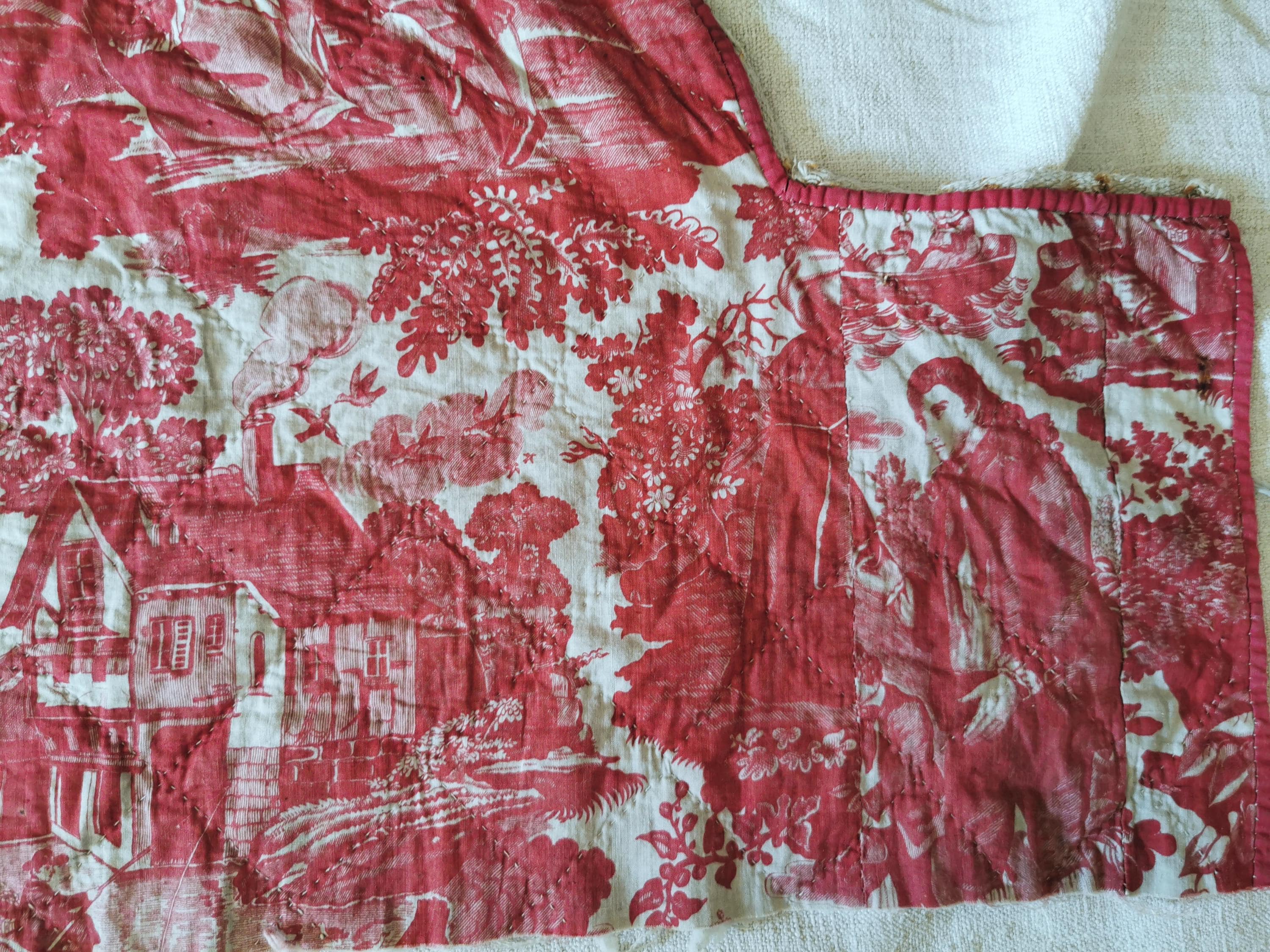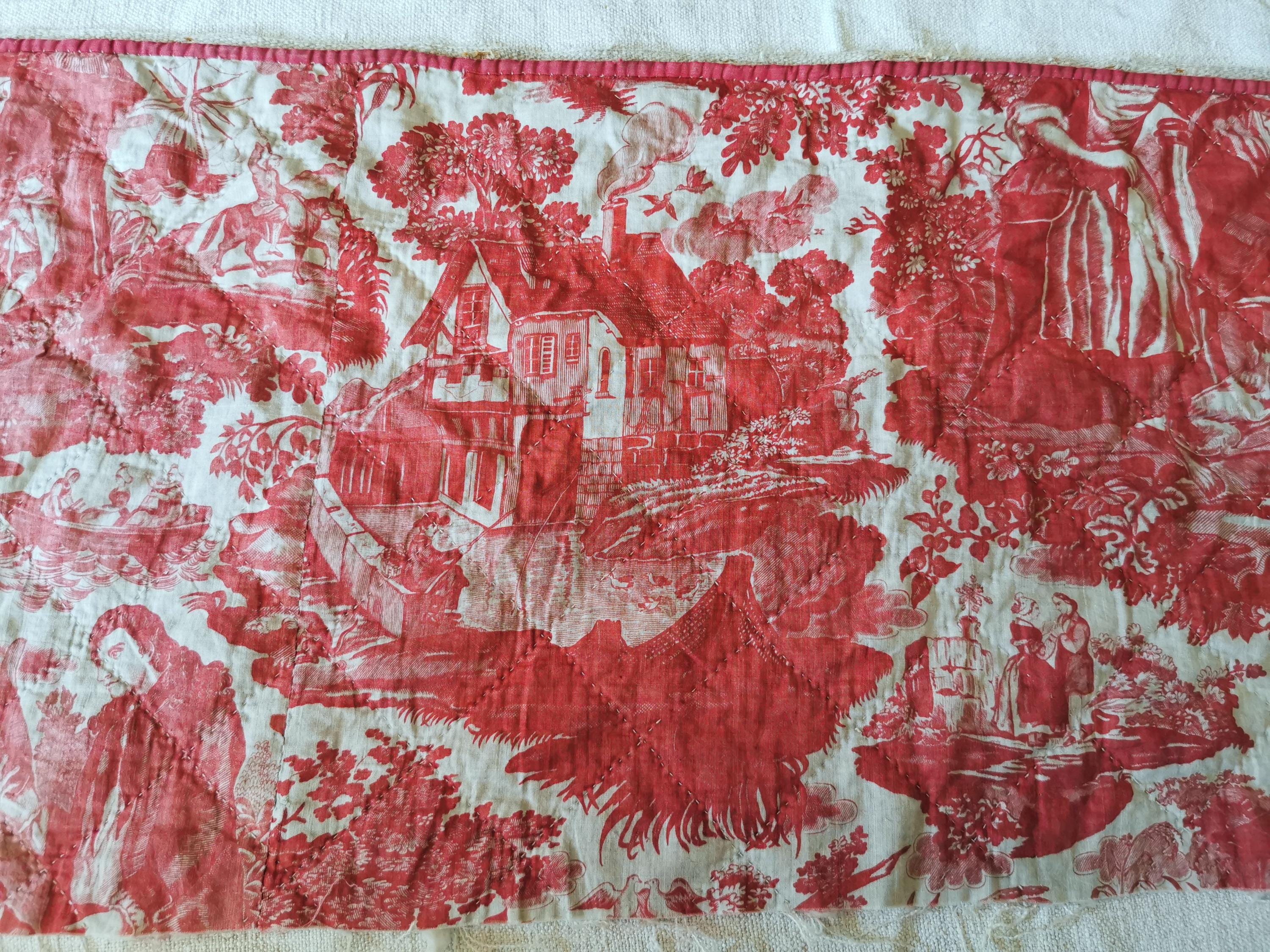 French Antique, Toile De Beautiran, Toile De Jouy, Rose Madder, 18th century, Chateau Decor, France, Toile Pillows, Antique Textile